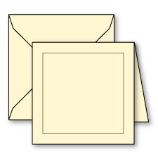 Square foldover with a panel border on the front with a channel score. Archival grade. 90lb (14 pt, 243 gsm) card stock.